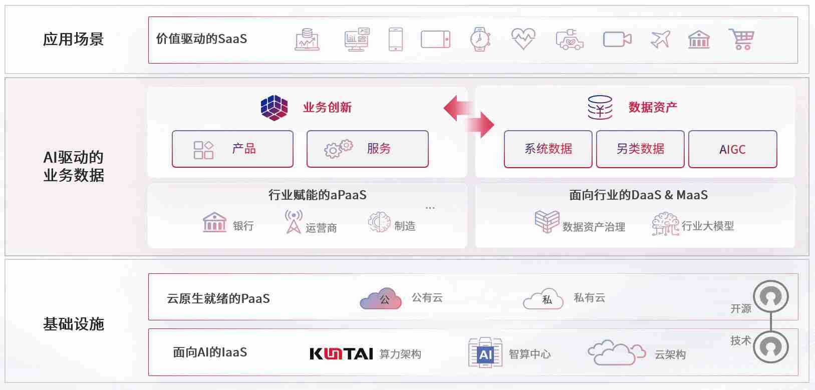 数字时代,,围绕企业数字化转型的关键要素,,,988钱包数码开创性的提出数云融合战略和技术体系框架,,,,着力在云原生、、数字原生、、、、AI原生和信创产业上架构产品和服务能力,,为处在不同数字化转型阶段的快消零售、、、、汽车、、金融、、、医疗、、、政企、、、教育、、、运营商等行业客户提供泛在的敏捷IT能力和融合的数据驱动能力,,,构建跨界融合创新的数字业务场景和新业务模式,,,,助力企业级客户建立面向未来的核心能力和竞争优势,,全面推动社会的数字化、、智能化转型升级。。。